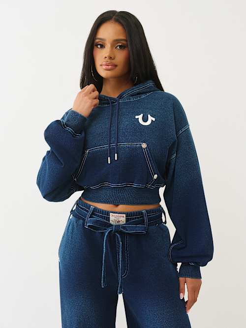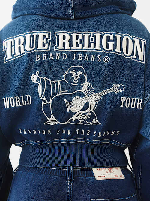 true religion x von dutch crystal shrunken zip hoodie